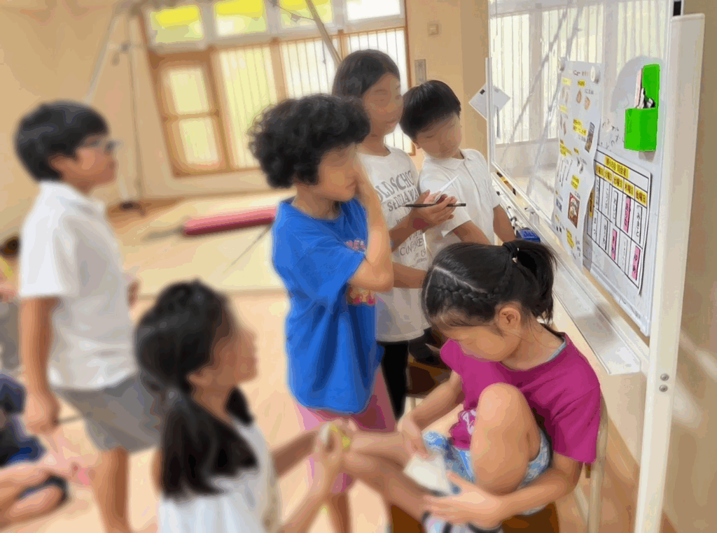 子ども達は配達員とお客さんの役を最後まで上手に対応できていました‼
