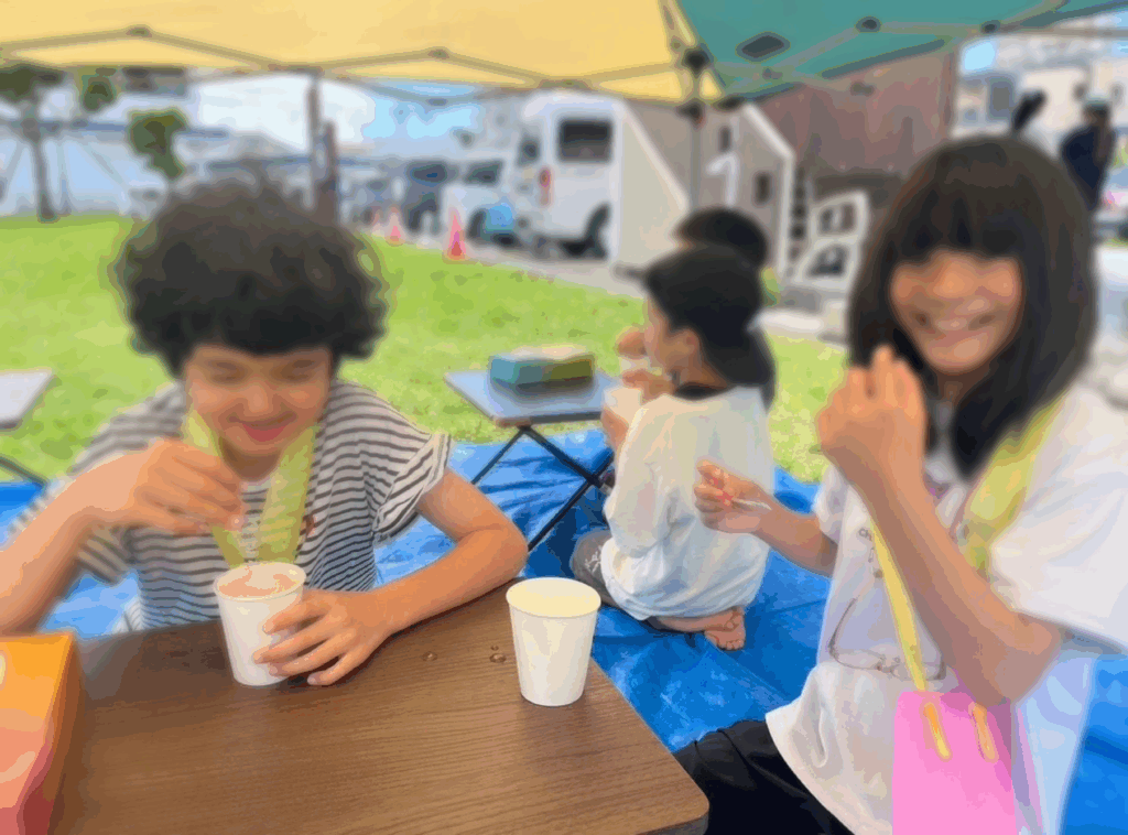 会場に着くと、かき氷に夢中になったり、コイン入れや輪投げ、的当てゲームに挑戦したりと大盛り上がり(∩^o^)⊃━☆