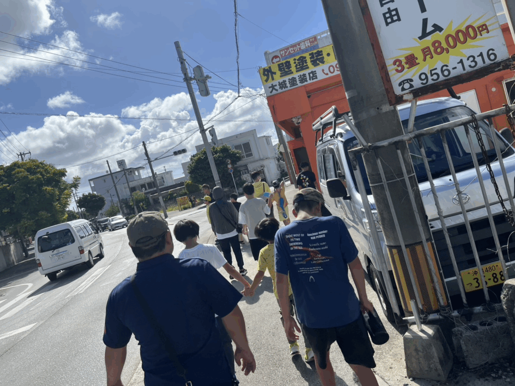 古堅南から大湾までは、みんなで仲良く徒歩で出発!👣