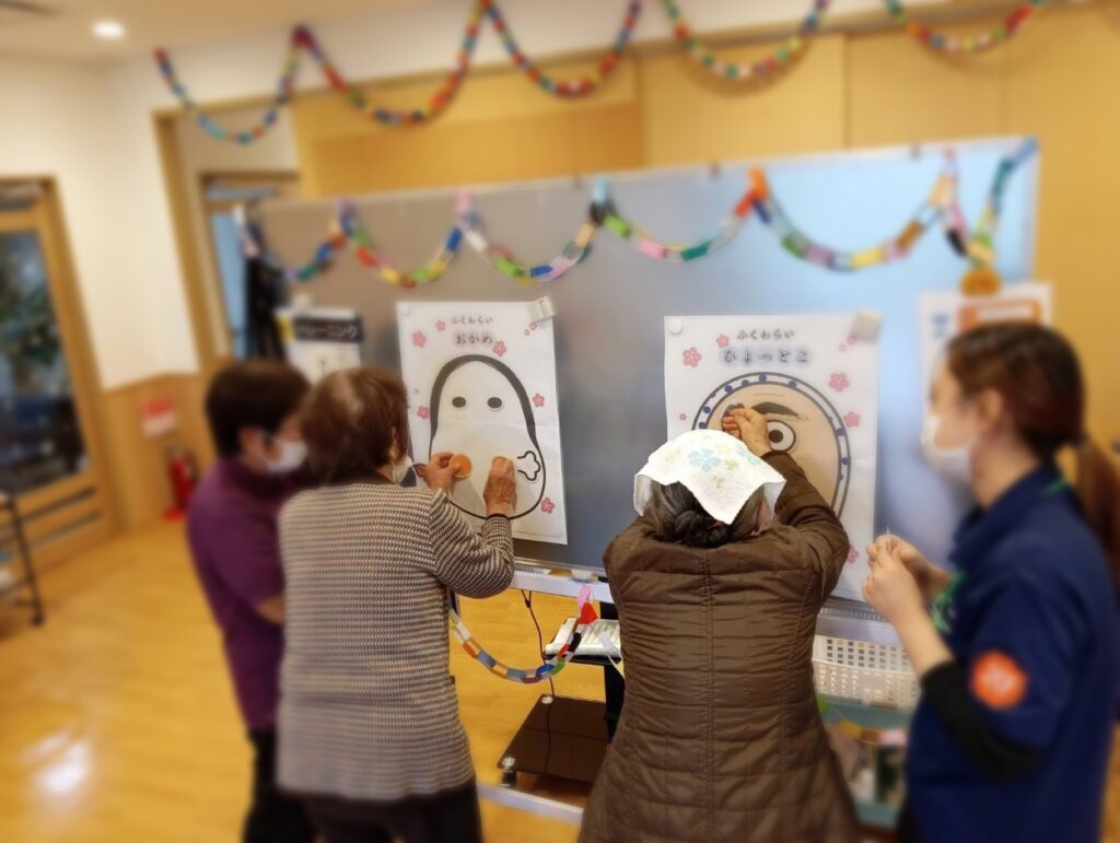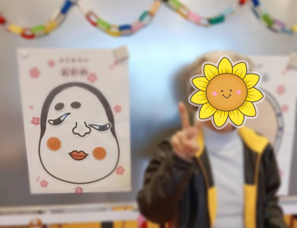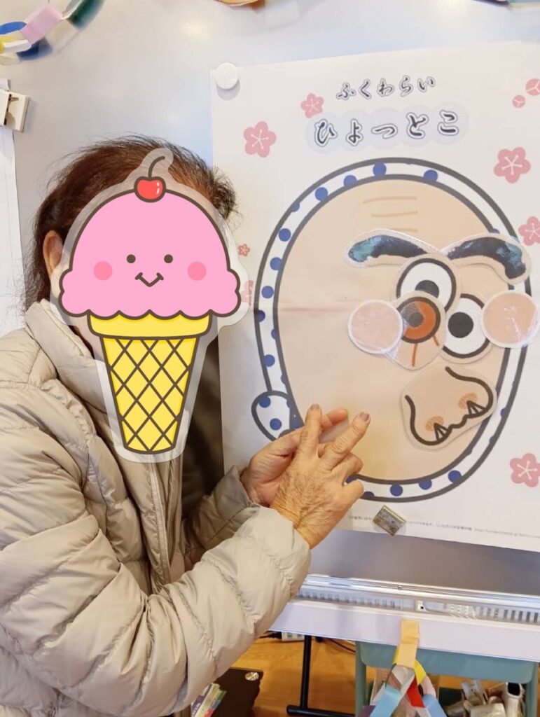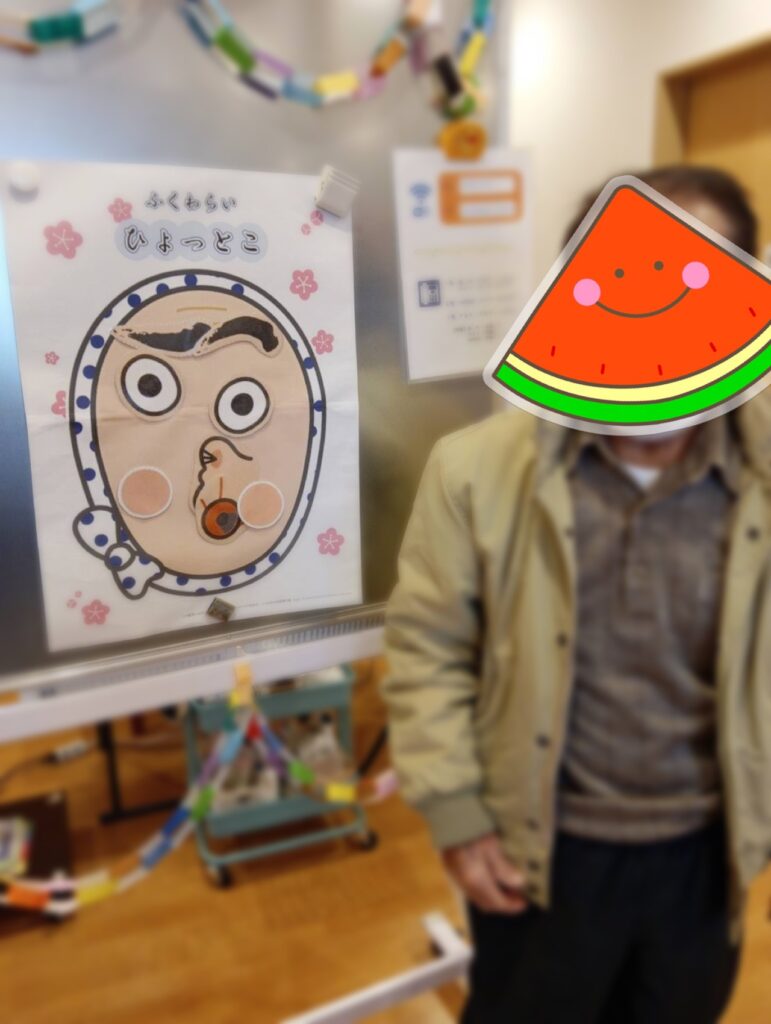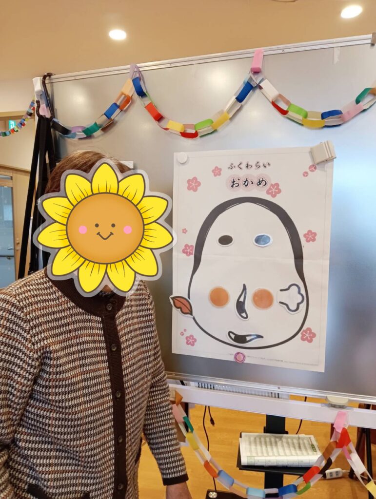 〈おかめさん〉と〈ひょっとこさん〉の2種類を用意し利用者さんには好きなほうを選んでいただきました!