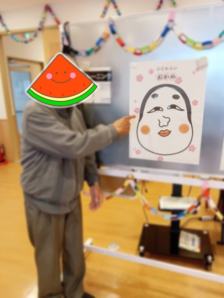 新年初めのきらめき通所では、レク活動に「福笑い」を行いました!