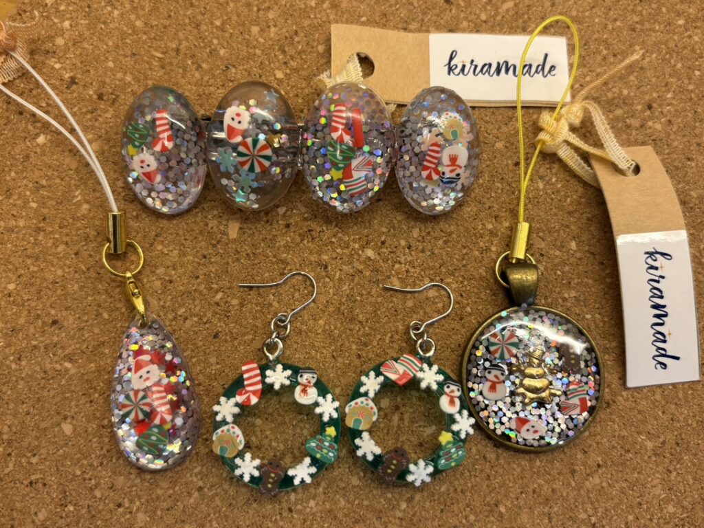 ↑ レジンで作ったキーホルダーと、バレッタ・ピアス(*^-^*)