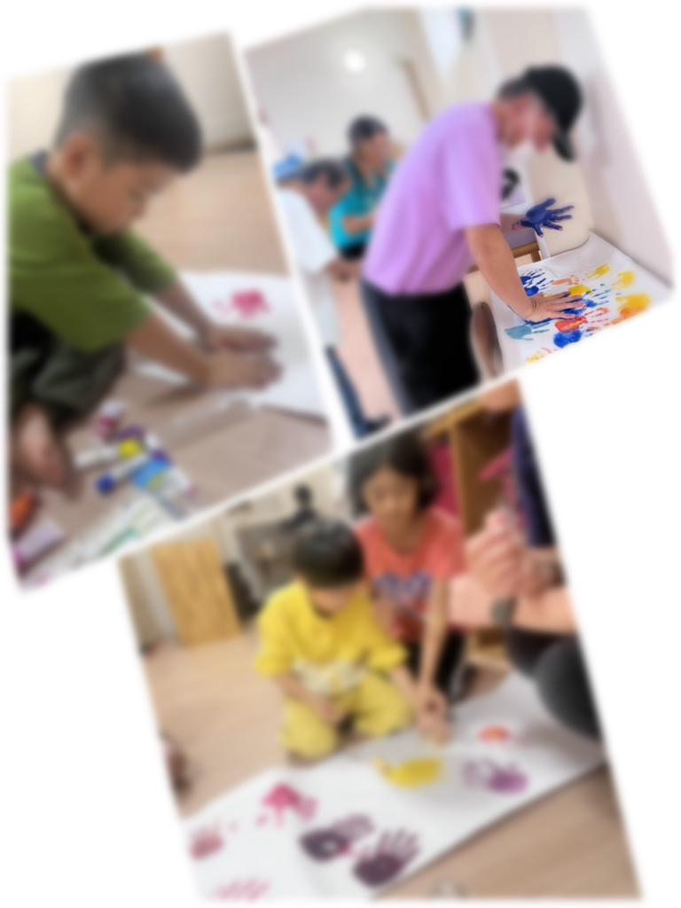 アイディアを出し合うところから始め、子ども達や利用者の方々にも協力してもらいながらひとり一人の手形の制作も楽しんですることができました👐
